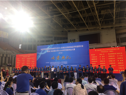 由高等六合彩即时开奖 生物科学类专业教学指导委员会、高等六合彩即时开奖 国家级实验教学示范中心联席会、《高校生物学教学研究》编辑部联合主办,由江苏师范大学、吉林大学生物国家级实验教学示范中心、吉林省生物化学与分子生物学会联合承办的第三届全国大学生生命科学创新创业大赛于201887-9日在江苏师范大学圆满落下帷幕。