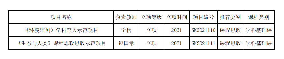 2021年度课程思政“学科育人示范课程”项目
