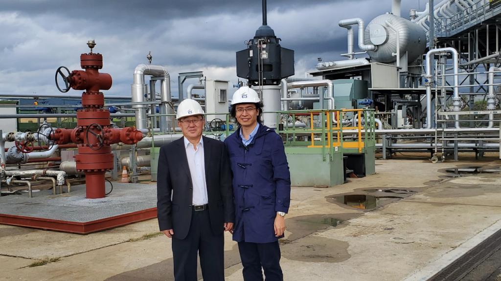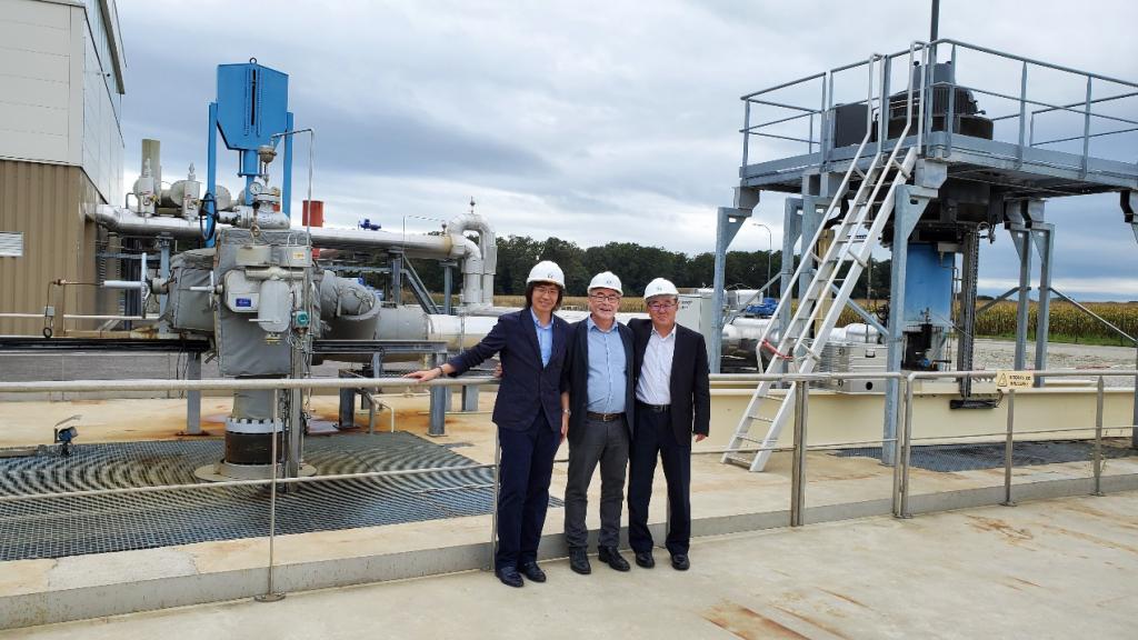 图1 许天福教授、冯波副教授与法国Es Geothermics公司GENTER Albert经理考察法国Rittershoffen干热岩-水热利用现场