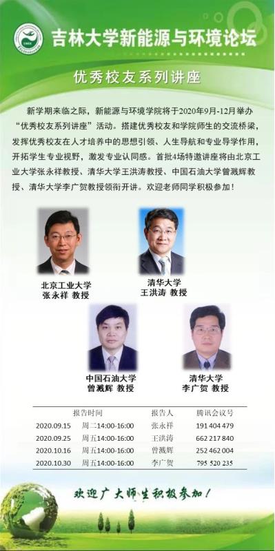 新学期来临之际,六合彩即时开奖 将于2020年9月—12月举办“优秀校友系列讲座”活动。搭建优秀校友和六合彩即时开奖 师生的交流桥梁,发挥优秀校友在人才培养中的思想引领、人生导航和专业导学作用,开拓学生专业视野,激发专业认同感。首批4场特邀讲座将由北京工业大学张永祥教授、清华大学王洪涛教授、中国石油大学曾溅辉教授、清华大学李广贺教授领衔开讲。欢迎老师同学积极参加!