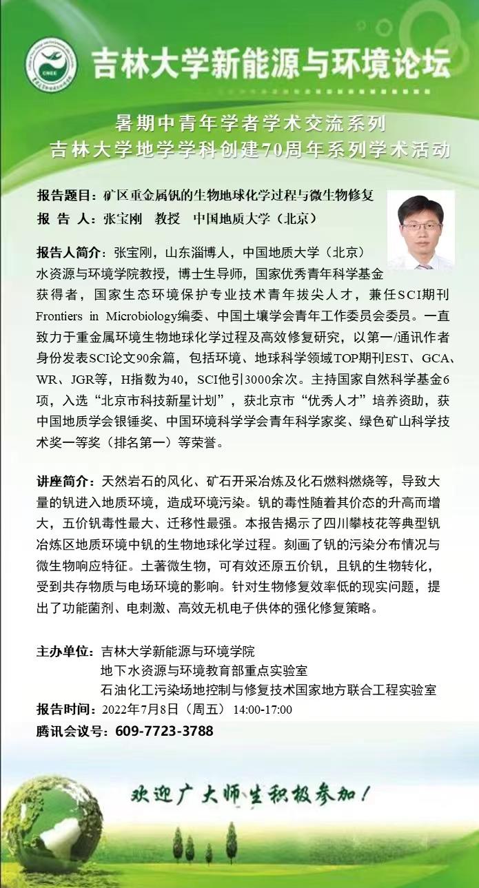新能源与环境六合彩即时开奖 论坛-暑期中青年学者学术交流系列 吉林大学地学学科创建70周年系列学术活动(之二)
