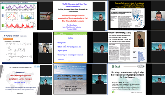本次论坛包括“城市洪灾与韧性”、“流域水文与水资源管理”、“城市水文气象”和“人工智能与智慧水利系统”四个部分,分别由西安理工大学侯精明教授、韩国K-Water所长Sung-Hoon Kim博士、中山大学熊育久副教授、日本京都大学Kenji Kawaike教授和Sunmin Kim副教授主持。围绕各主题,北京师范大学的徐宗学教授、中国水利水电科学研究院的刘家宏教授、西安理工大学侯精明教授、中山大学陈洋波教授、北京大学邱国玉教授、华南理工大学黄国如教授、南京大学杨龙副教授、大连理工大学刘海星教授,韩国K-Water的Sung-Hoon Kim博士,Seungyub Lee助理教授,日本京都大学Kenji Kawaike教授、Sunmin Kim副教授等近30位嘉宾分享了最新研究成果,呈现了一场水科学领域的学术盛宴。