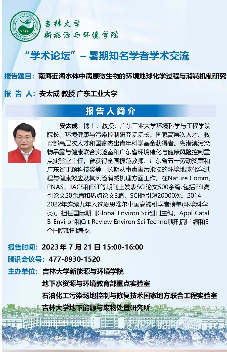 新能源与环境六合彩即时开奖 学术论坛(202303、202304)-暑期知名学者学术交流