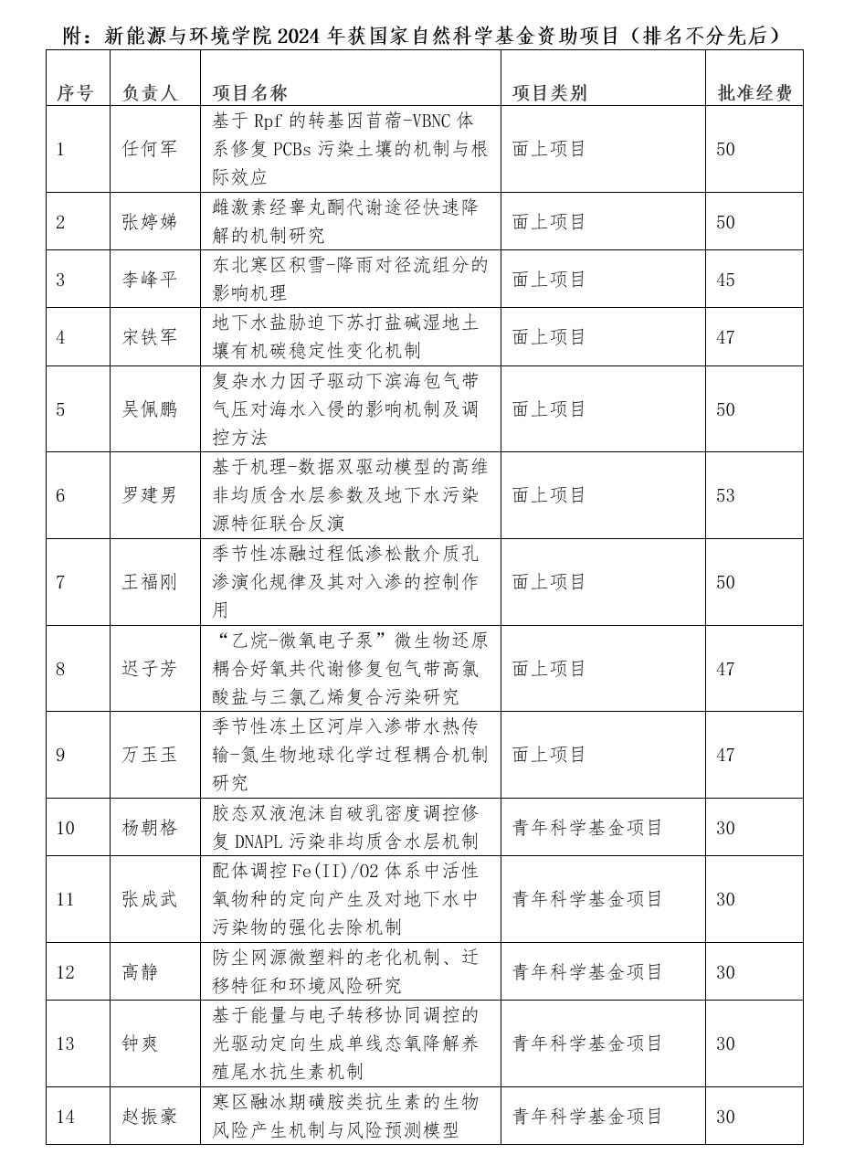 获得资助的面上项目负责人分别是(排名不分先后):任何军、张婷娣、李峰平、宋铁军、吴佩鹏、罗建男、王福刚、迟子芳、万玉玉;获得资助的青年基金项目负责人分别是(排名不分先后):杨朝格、张成武、高静、钟爽、赵振豪。