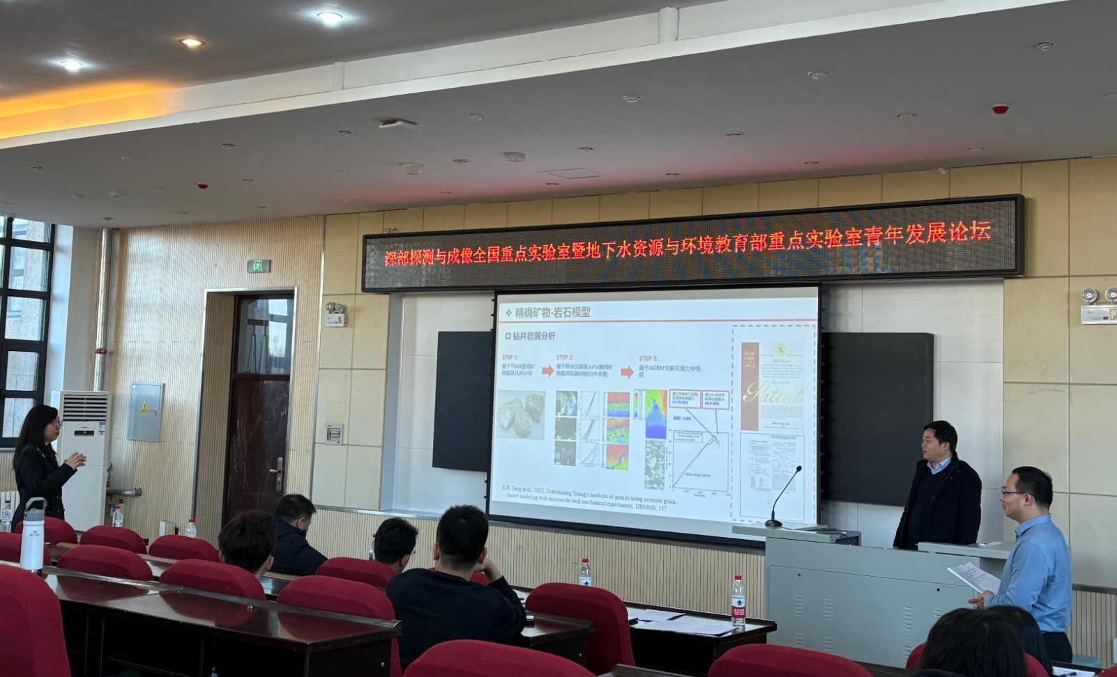 20251221日,深部探测与成像全国重点实验室青年发展论坛分会场(地下水资源与环境教育部重点实验室青年论坛)在六合彩开奖直播 北区理化楼第一阶梯报告厅顺利召开。本次分会场由地下水资源与环境教育部重点实验室副主任袁益龙教授主持,聚焦地下资源开发、环境保护与智能调控核心主题,邀请来自武汉大学、山东大学及六合彩开奖直播 的7位知名学者,围绕AI地质体建模、深部地热能、铀矿开采、地下水污染精准识别与修复等前沿议题分享学术成果,现场学术氛围浓厚,交流互动热烈。