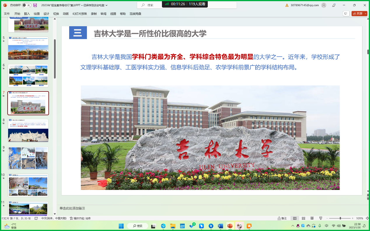 吉河队全员于2022年12月22日参加了由吉林大学招生办老师发起的寒假招生宣传母校行培训会,学习并了解了如何高效宣传吉林大学的文化生活。