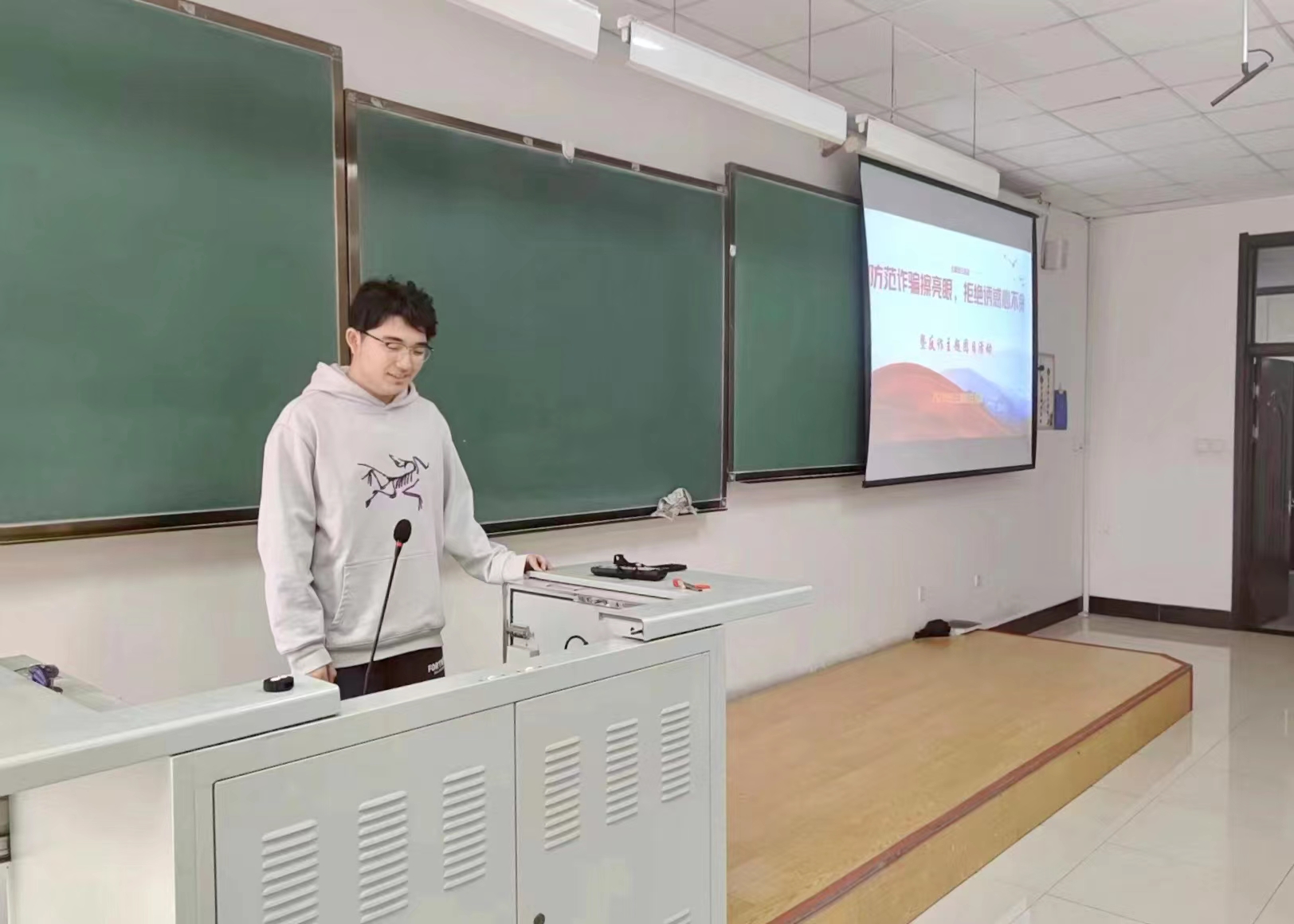 252208班团支部在团支书郭岳的带领下开展“防范诈骗擦亮眼,拒绝诱惑心不贪”主题团日活动,暨反电信网络诈骗宣传教育主题团日活动。本次团日活动参与人员有支部内全体19名共青团员和8名班级成员,在李四光楼教室进行。