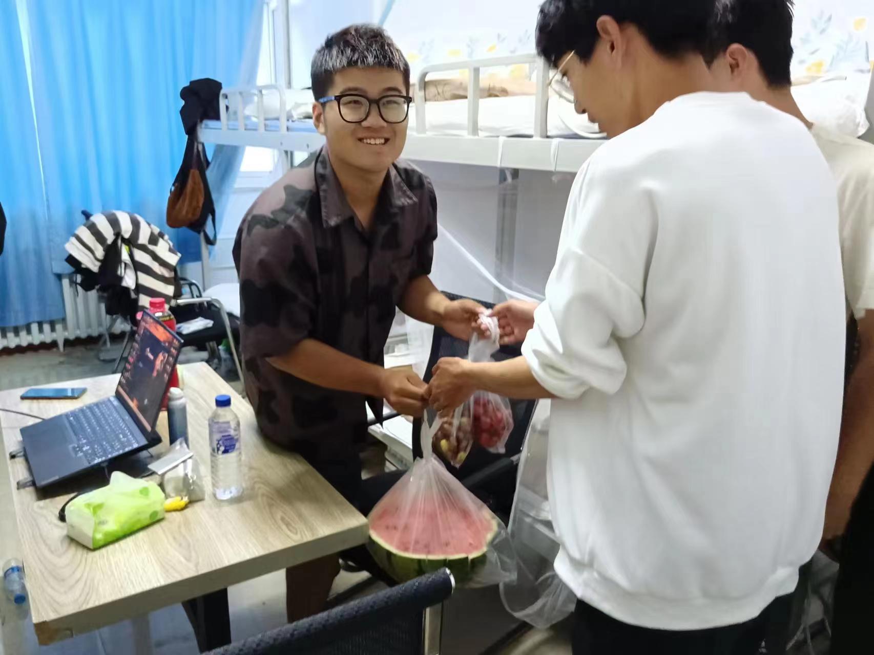 为师生们购买的西瓜、甜枣、小番茄等水果被送到教职工公寓和学生寝室,分发慰问品的过程中,欢声笑语响满走廊。六合彩即时开奖