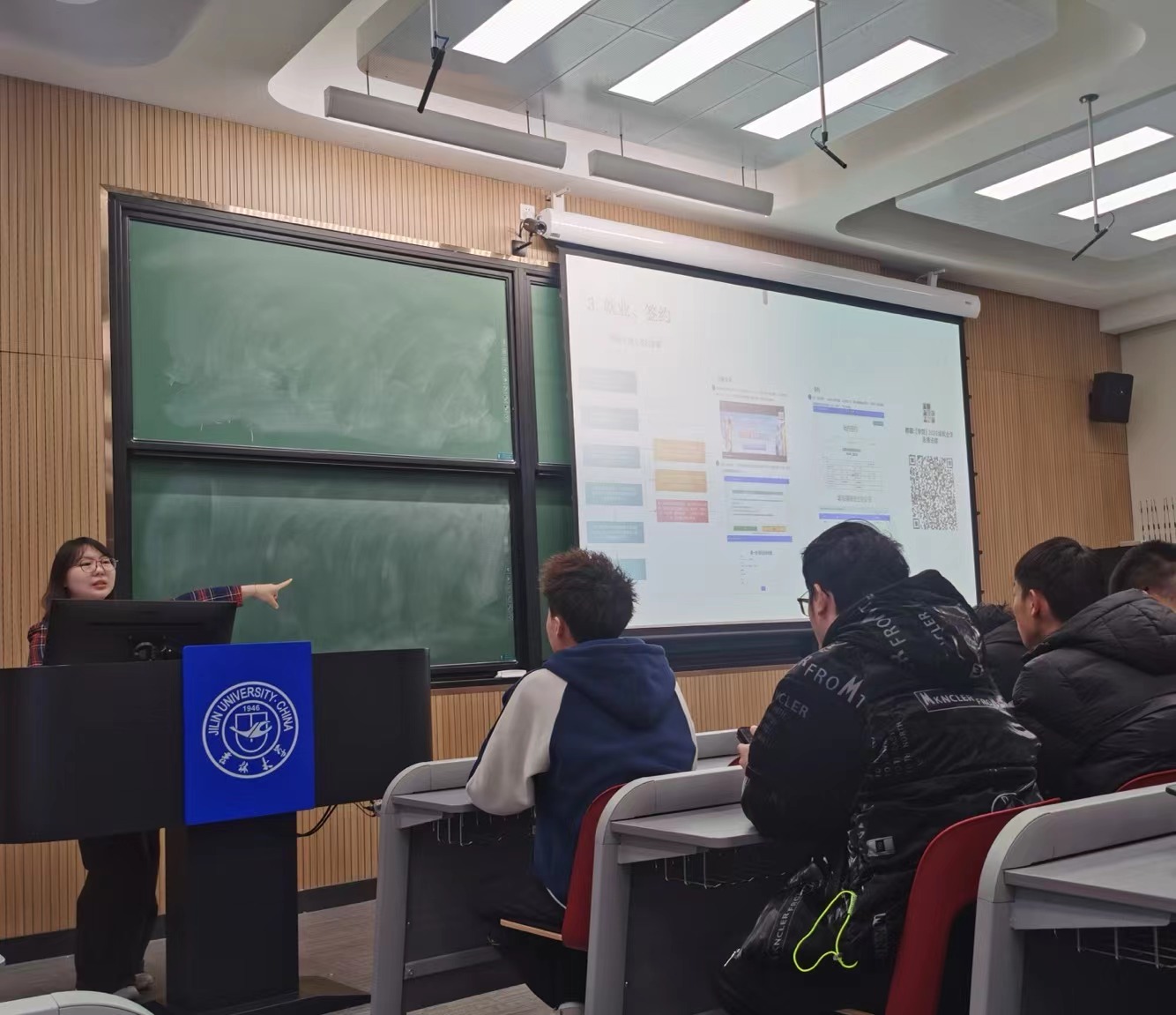 就业系统签约流程,为同学们详细讲解了目前的就业形势,建议大家按照个人能力和水平合理调整个人预期,争取好的就业机会。2021级辅导员李薇老师提醒同学们要对接下来的学业及职业发展进行规划,有升学意向的学生应当主动出击联系研究生导师,与指导教师建立联系,提升个人科研能力;有就业意向的同学应当进一步提升自己的应聘竞争能力,提前准备简历,关注就业市场和招聘信息,掌握应聘先机。2022级辅导员母茂松老师对本学期的工作计划进行了讲解,提醒同学们提前做好回迁和实习准备,同时对劳动教育课程实践部分的成绩评定相关细则作出了解读。2023级辅导员姜岳彤老师提醒同学们本学期课程难度较大,建议大家要运用适宜的学习方法,跟住课堂、按时复习、避免掉队。