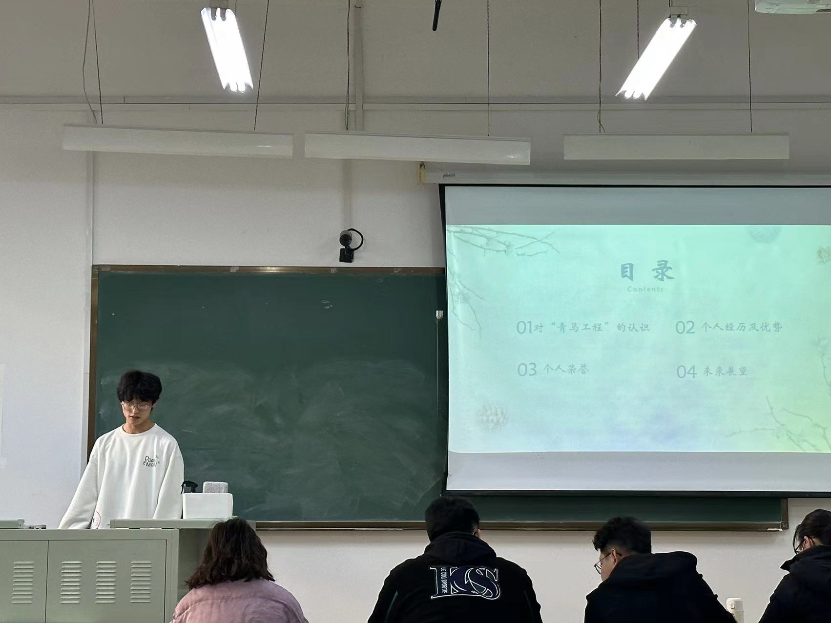 参选的同学们分别提交报名表,从个人优势、自我认知、未来展望等多个方面进行时长约为3分钟的自我介绍。学生们的个人介绍集专业理论和个人经历为一体,阐述对马克思主义的理解的同时,抒发了自己的感慨。在自我介绍之后,评委老师向各位竞选者提出了相应的问题,从多方面与竞选同学进行交流,并给予了宝贵的建议。