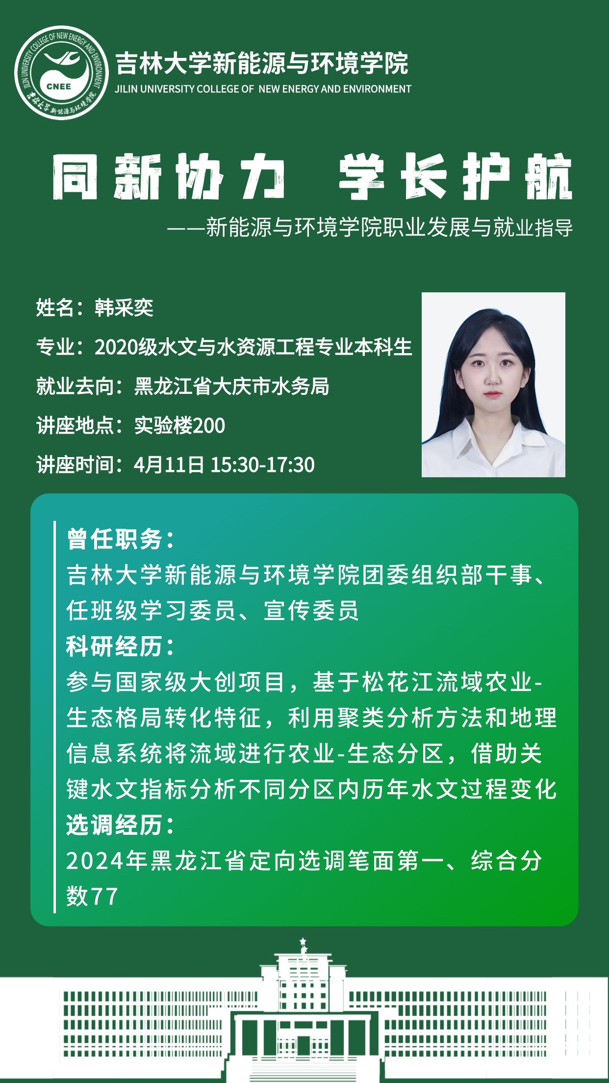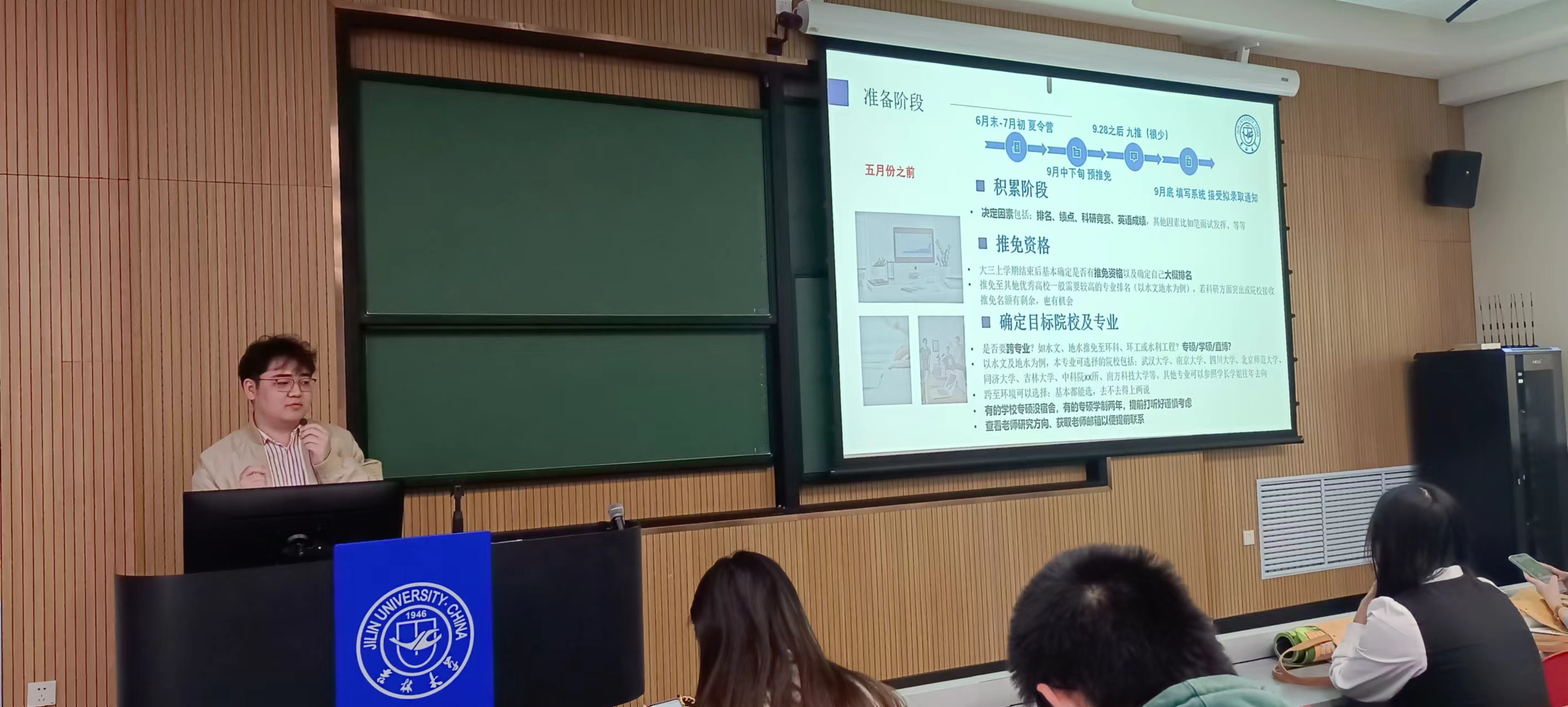 本次活动主讲人为四名2024年优秀应届毕业生。水文与水资源工作专业韩采奕同学在2024年黑龙江省定向选调考试中笔试、面试均列第一,成功上岸黑龙江省大庆市水务局;地下水科学与工程专业程迟吉太,于2023年成功推免至南京大学地球科学与工程六合彩即时开奖
