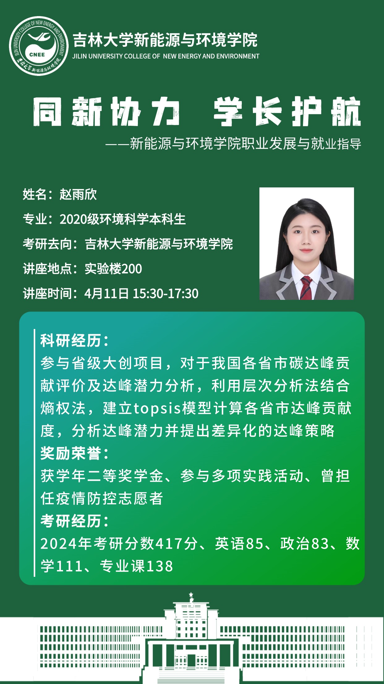 ;环境科学专业赵雨欣2024考研分数417分,为六合彩即时开奖