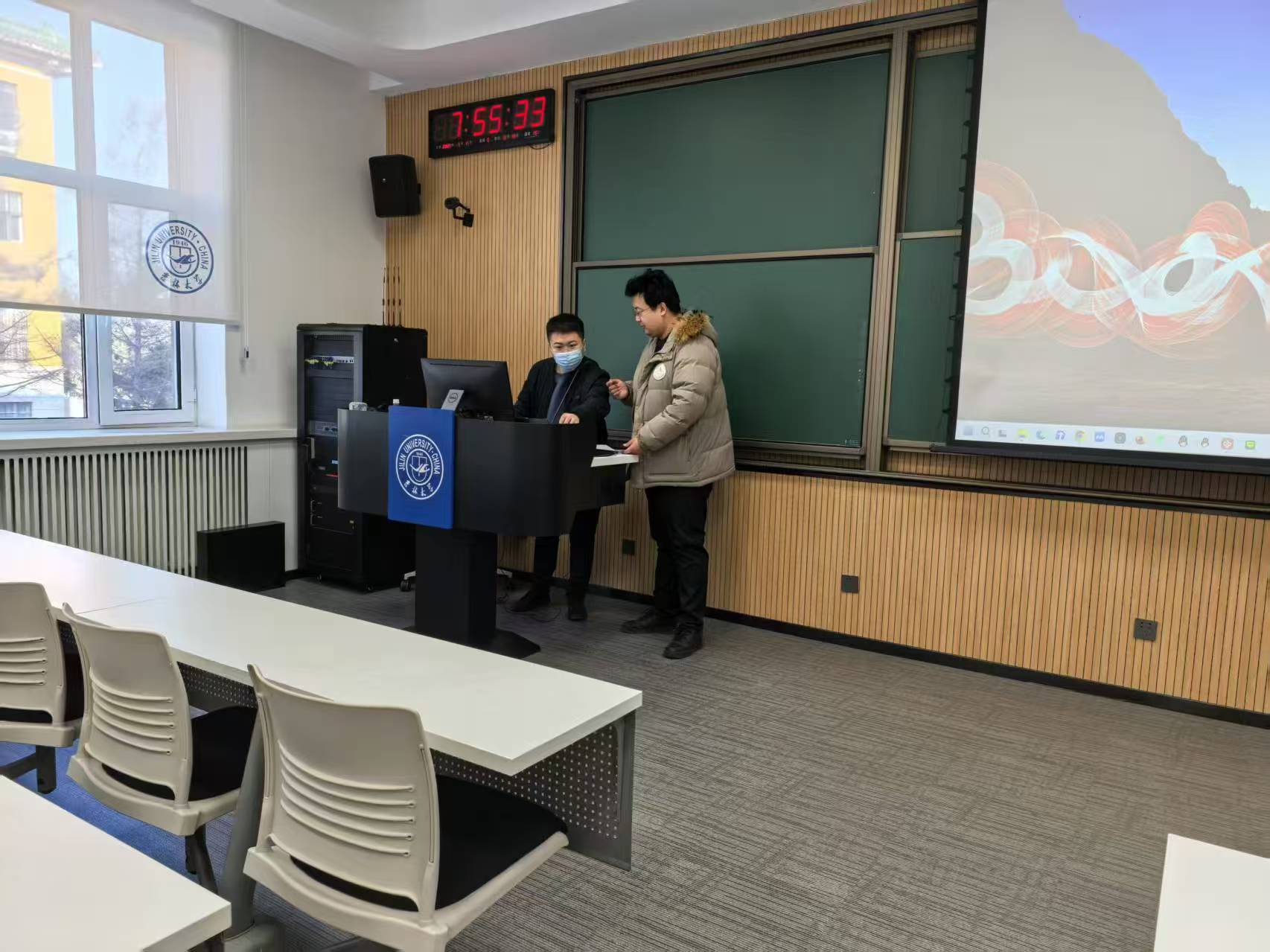 3月14日,2022级辅导员母茂松老师进入《固体废物处理与处置》课堂,与任课教师沟通课堂情况,本次课程共3人未到。
