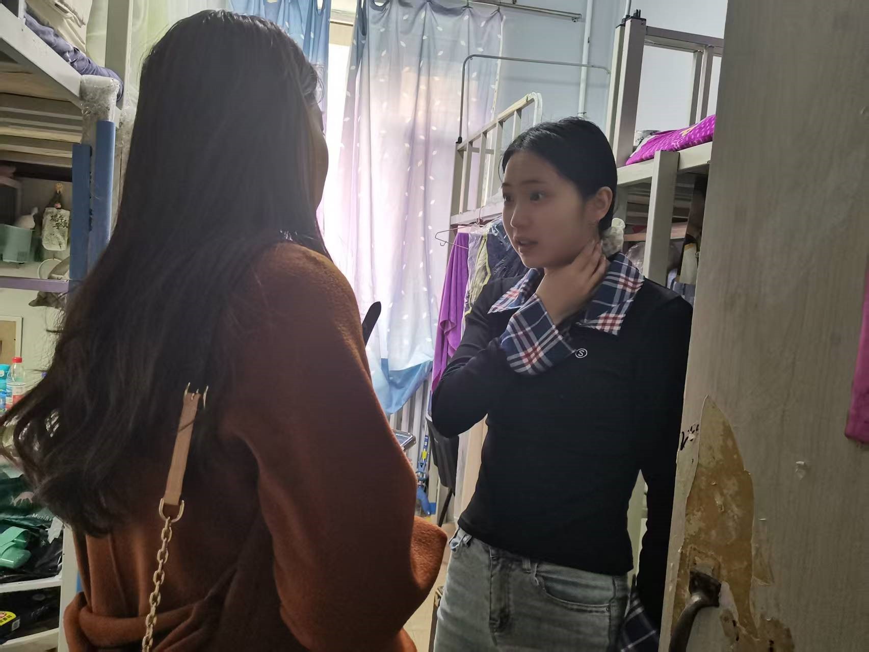 党委副书记、2024级辅导员吴哲老师进入南苑一公寓和三公寓检查寝室卫生情况和消防安全情况。检查过程中,吴老师对卫生不合格的寝室提出批评并督促其尽快整理寝室内务。