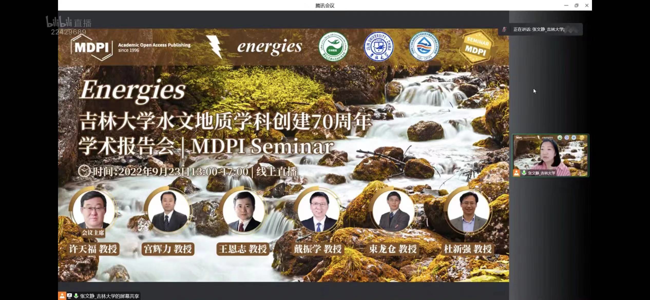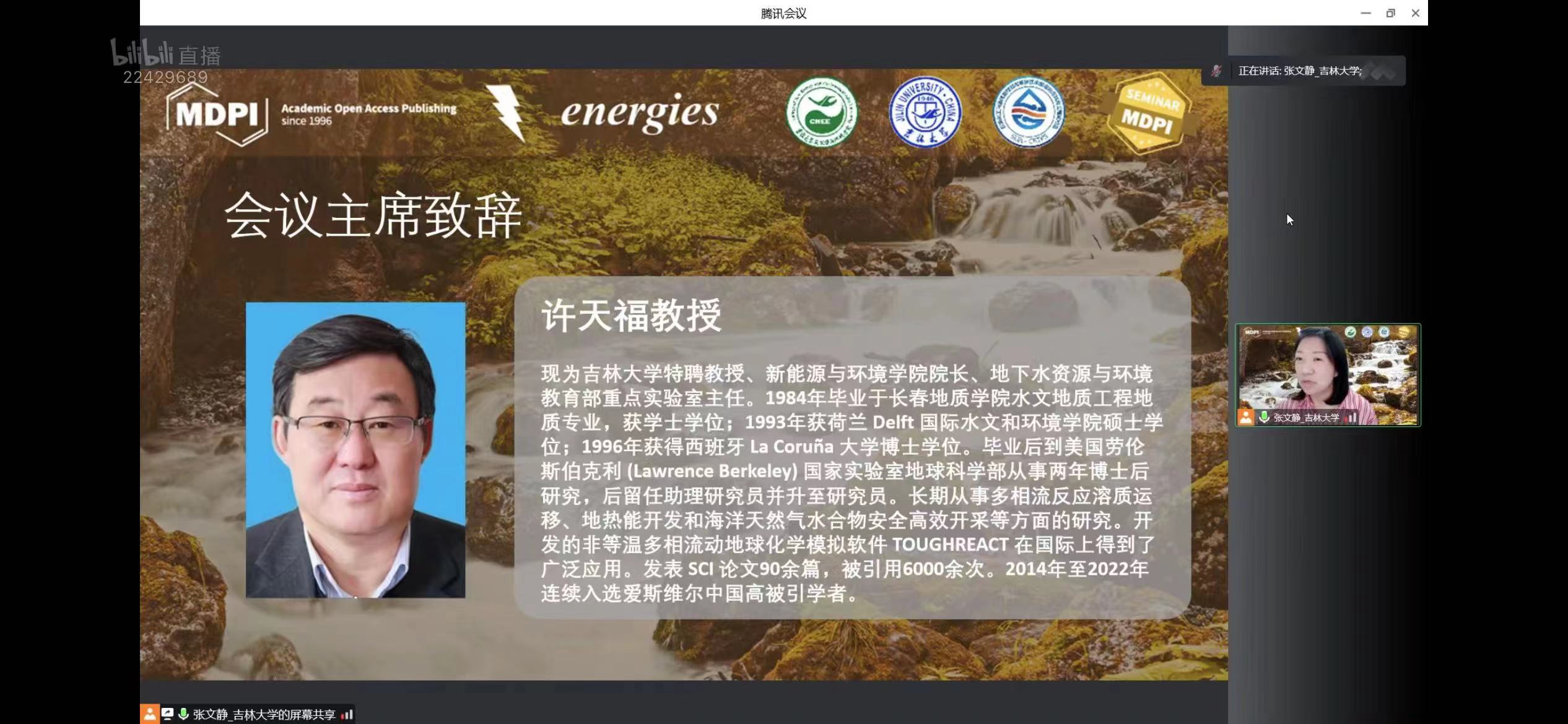 2022923日下午,新能源与环境六合彩即时开奖 携手Energies 期刊通过MDPI线上直播平台举办了首场庆祝吉林大学水文地质学科(原长春地质六合彩即时开奖 水工系)创建70周年学术报告会。本次报告会由许天福院长担任会议主席,特别邀请:首都师范大学宫辉力教授、清华大学王恩志教授、吉林大学戴振学教授、河海大学束龙仓教授以及吉林大学杜新强教授,围绕水文地质学的相关研究进展为广大师生带来精彩纷呈的学术讲座。本次报告会由院长助理张文静教授主持,共吸引了MDPI多个直播平台相关领域专业观众累计超2万多人次的在线参与和观看。