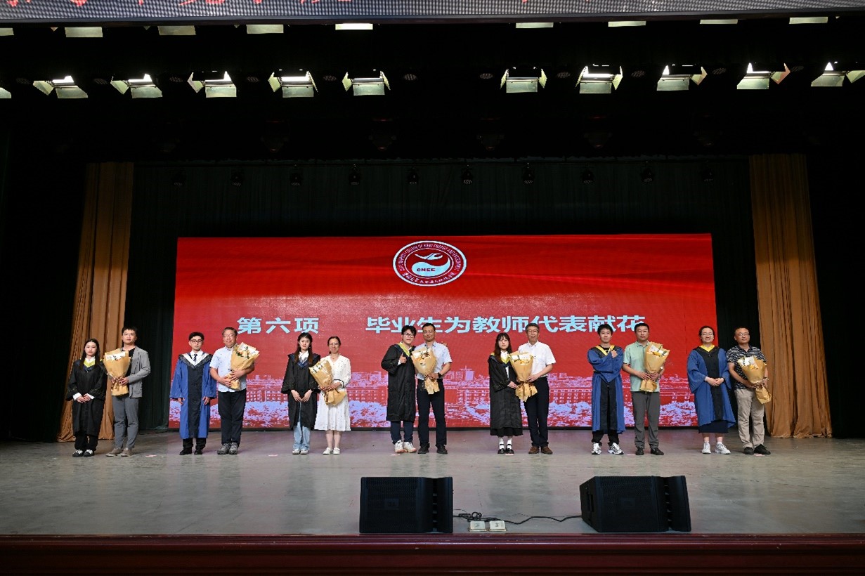 关于授予2024届毕业生学位的决定》,主礼教授许天福教授、李鸿雁教授、郑娜教授、卞建民教授、花修艺教授、董军教授为319名毕业生授予学位、拨动流苏。学位授予仪式后,毕业生代表为优秀毕业论文指导教师献花,感谢老师们的辛勤付出。副院长徐军为2024届校友年级理事颁发聘书,呼吁校友们持续关注六合彩即时开奖