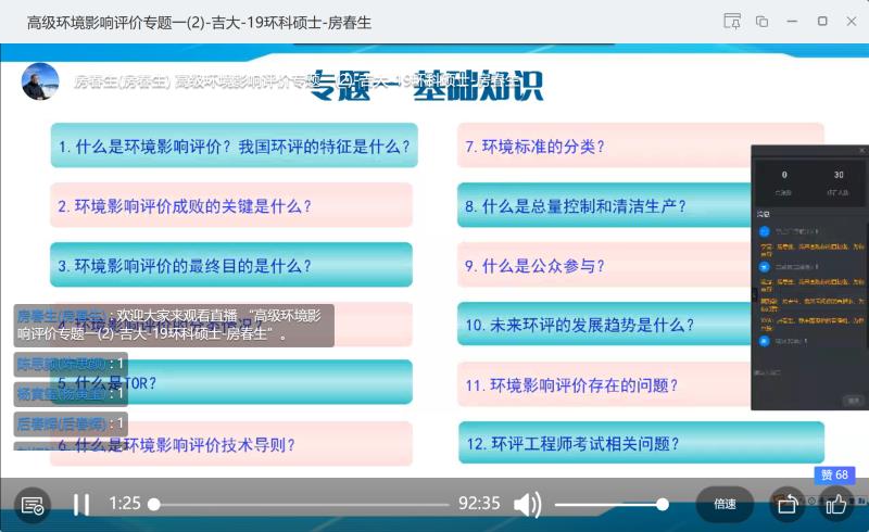 房春生教授开设的环境科学专业硕士研究生专业课《高级环境影响评价学》顺利进行了首次网络直播授课,成为六合彩即时开奖