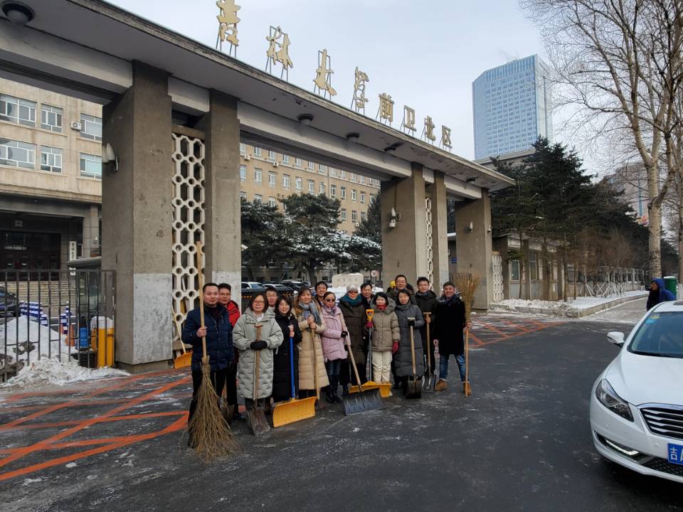 本次活动得到了全体支部成员积极响应,全体支部党员不怕苦、不怕累,铲雪现场气氛热烈,干劲冲天。受党员同志们铲雪除冰现场火热气氛的感染,路过现场的我系民主党派人士和群众也自发拿起工具加入铲雪除冰队伍中,形成了党员群众齐动手,铲雪除冰暖人心的美丽场景。经过近一小时的奋战,大家终于将门前的积雪积冰清扫干净,为广大师生开辟了一条充满温情的畅通之路,恢复了吉林大学北区校门的整洁形象。