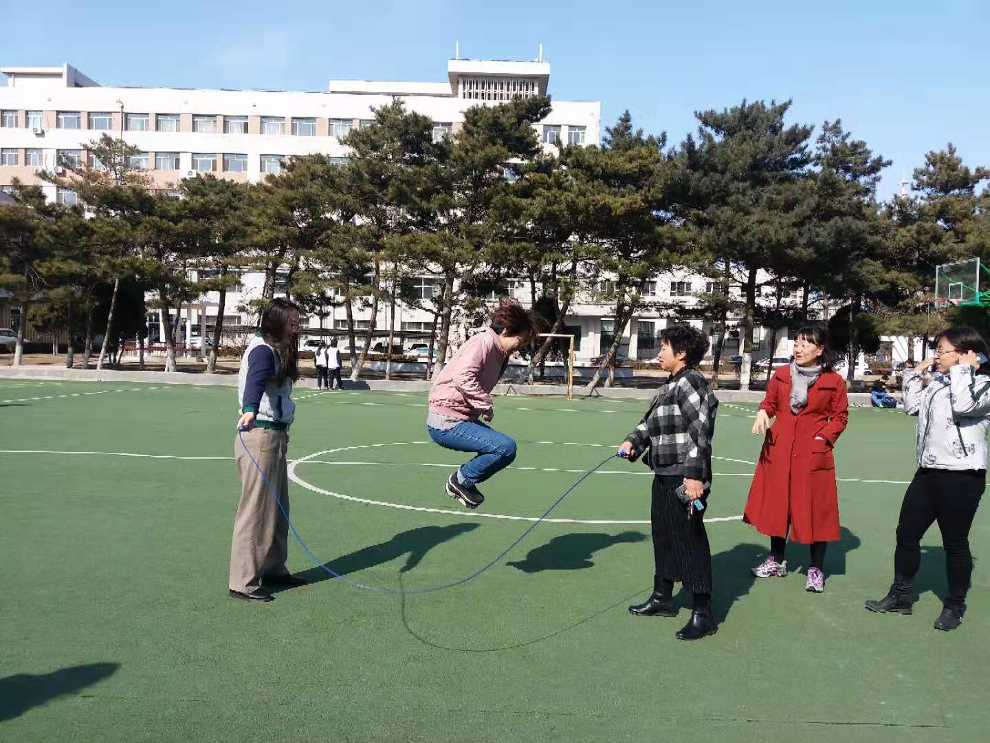 3月8日下午,在“三八”国际劳动妇女节之际,新能源与环境六合彩即时开奖 工会、妇委会组织女教职工在理化楼篮球场开展了庆祝活动。活动热闹非凡,来自全院4个工会的女教职工踊跃参加了跳绳、踢毽子、投篮、背靠背运球等项目,现场活动氛围热烈。大家纷纷表示,通过参加活动,既放松了心情,也增进了彼此的互动和交流,更激励了自己立足本职、争创一流的积极性、主动性和创造性,彰显了女性魅力,凝聚了巾帼力量。