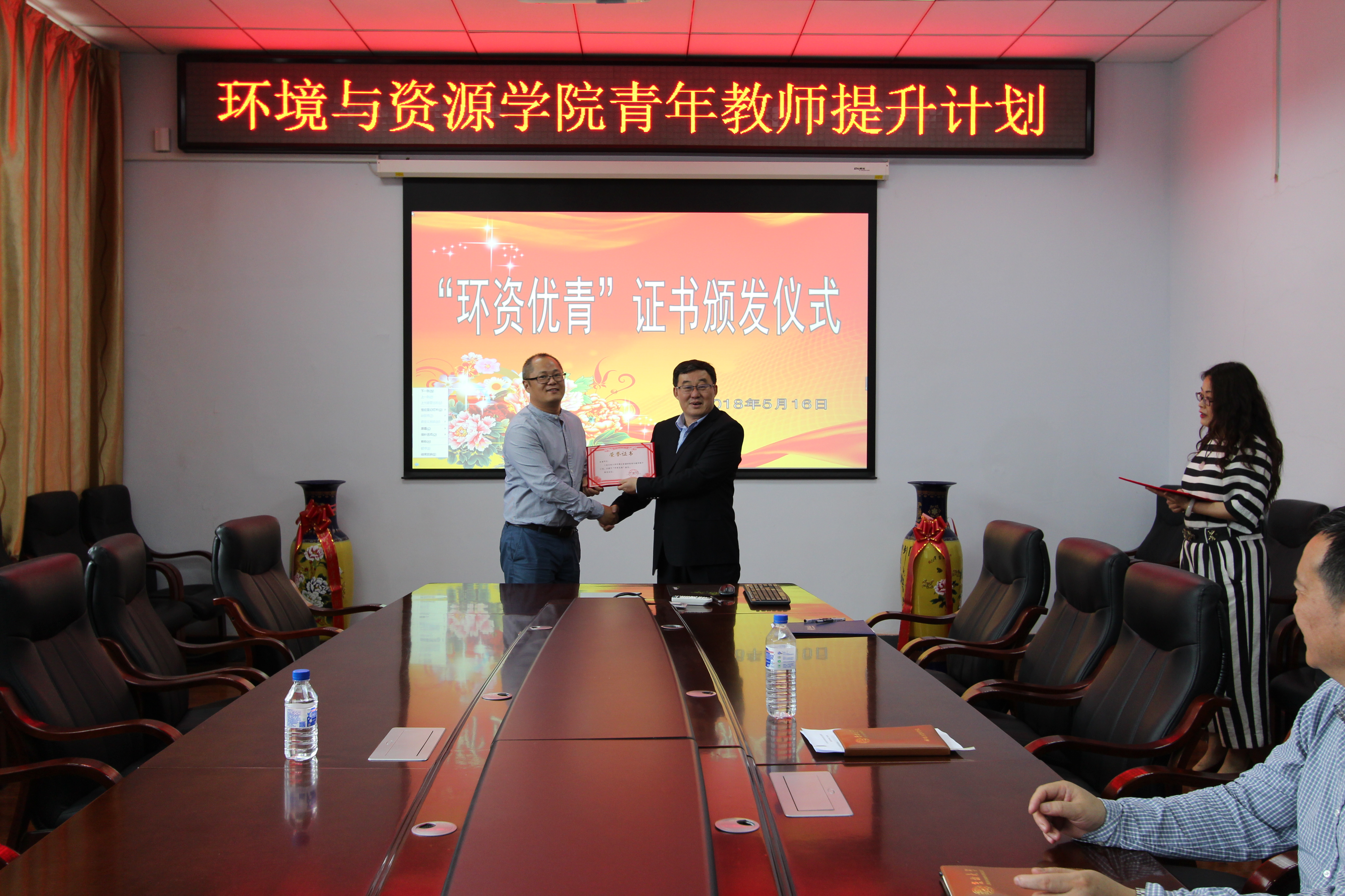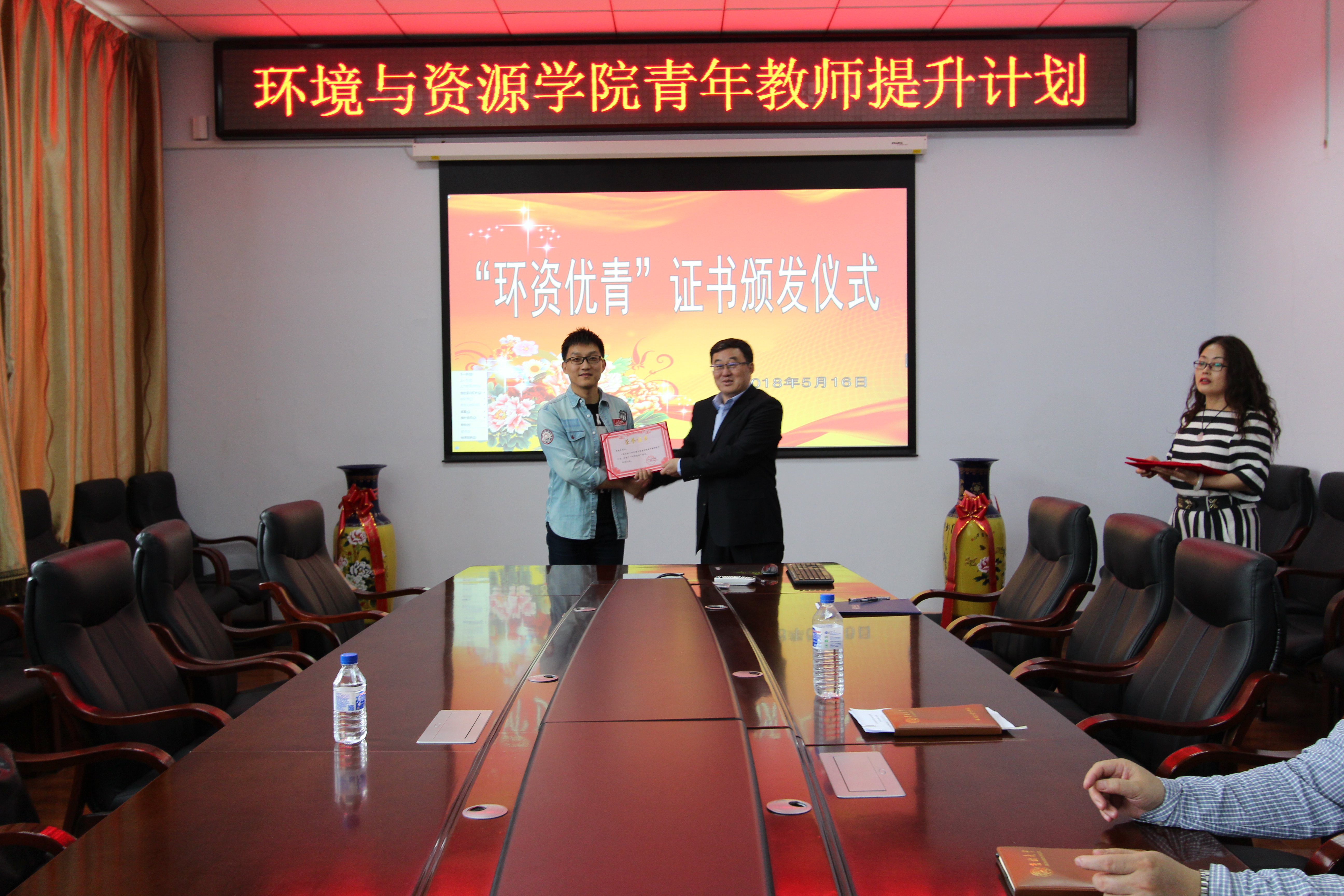在北区理化楼260会议室,举行了2018年度“环资优青”证书颁发仪式。六合彩即时开奖