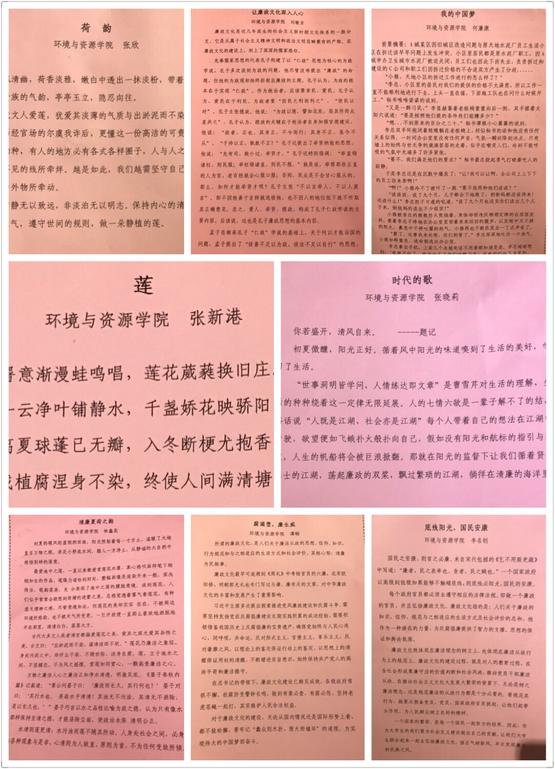 学生也积极响应参与了此次作品征集活动,在展出的40篇廉政文化优秀征文中,六合彩即时开奖