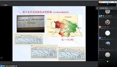 师生带来了多场精彩报告。张永祥教授对比介绍不同时期多孔介质水流和溶质运动方程的建立方法和形式,重点介绍基于统计热力学的地下水动力学方程的建立过程。王洪涛教授重点介绍了我国水处理剩余污泥和生活垃圾产生量巨大,在简介主要技术路线的基础上探讨我国应有的选择。曾溅辉教授重点介绍了沉积盆地地下水流动特征,讨论了地下水流动对油气藏形成和分布的影响,以及有关地下水对油气藏形成和分布影响的具体实例。李广贺教授结合我国水土污染治理国家修复和技术发展,重点介绍了地下水污染修复的相关政策和技术。井立强教授介绍了近年来发展的系列基于光生电荷调控的改性策略,以及所采用策略显著地改善材料光生电荷分离状况的关键机制。严刚副院长介绍了我国大气环境规划发展历程、主要技术方法及未来管理需求与展望。胡春教授重点介绍了如何通过表面微电场的构建,解决传统芬顿体系在实际应用中的瓶颈问题。束龙仓教授回顾了32年来从事地下水研究工作的足迹,介绍了济南泉水研究的关键环节、泉水持续喷涌的科学应对方法。