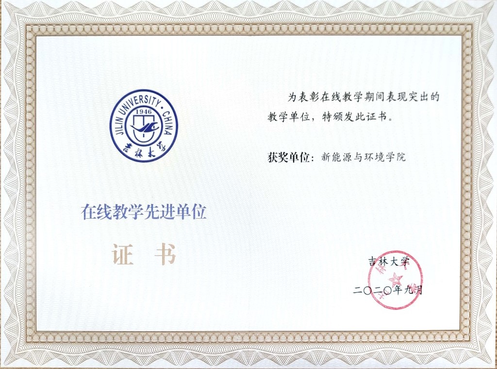 获得了2020年吉林大学“三全育人”先进单位称号,1名教师获得吉林大学“育人标兵”称号。