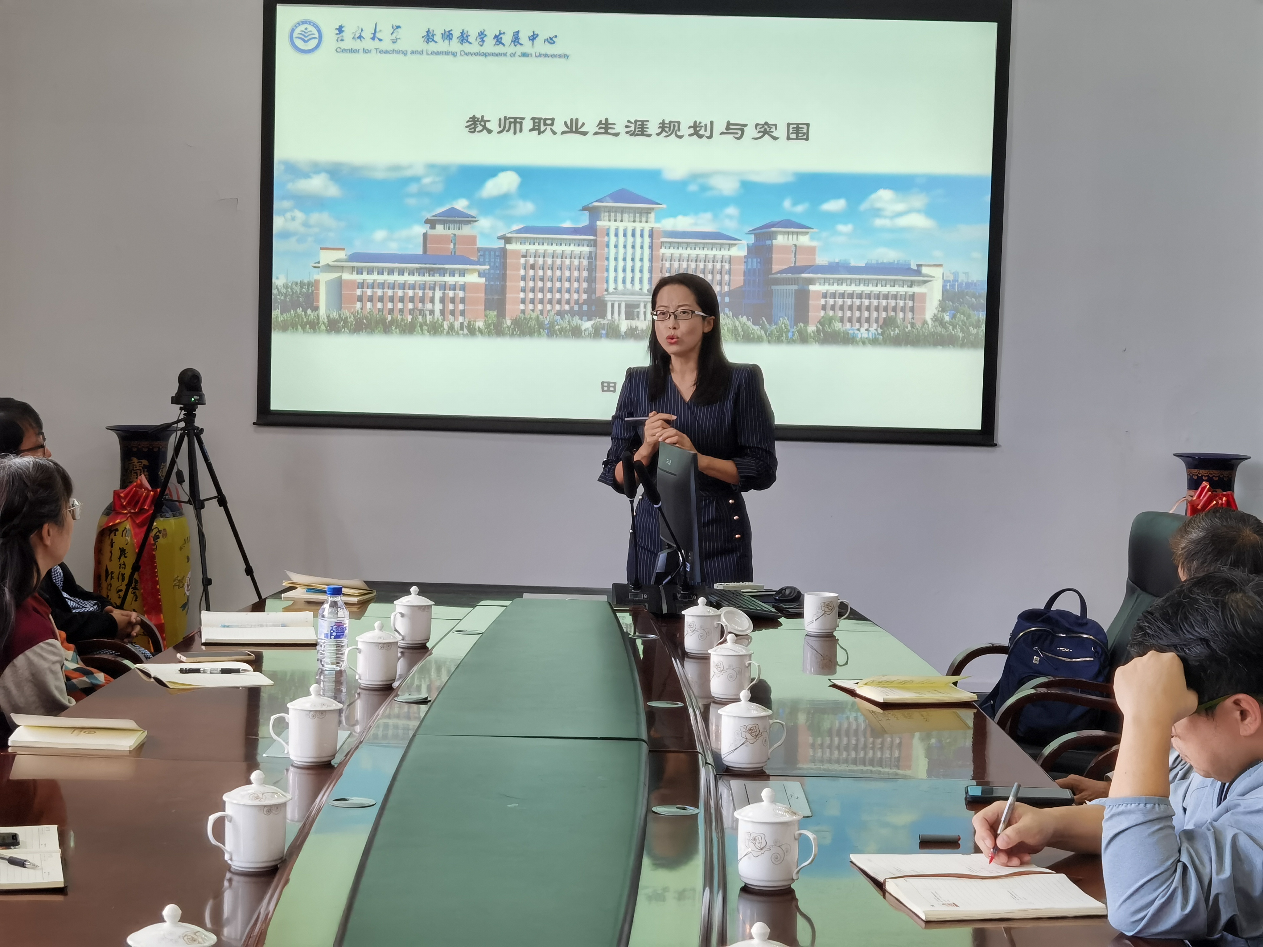 田教授从青年教师职业生涯规划及常见瓶颈,教学名师进阶的五个维度和4+N个层次,教发中心能提供的支持和资助等三个方面向大家介绍了吉林大学教师教学发展中心的理念。对新入职教师的专业适应与过渡期、青年教师的专业形成与成长期、中年教师的专业突破与退守期、专业补给更新期及卓越教师资深教师的专业成熟期进行了深入解读。
