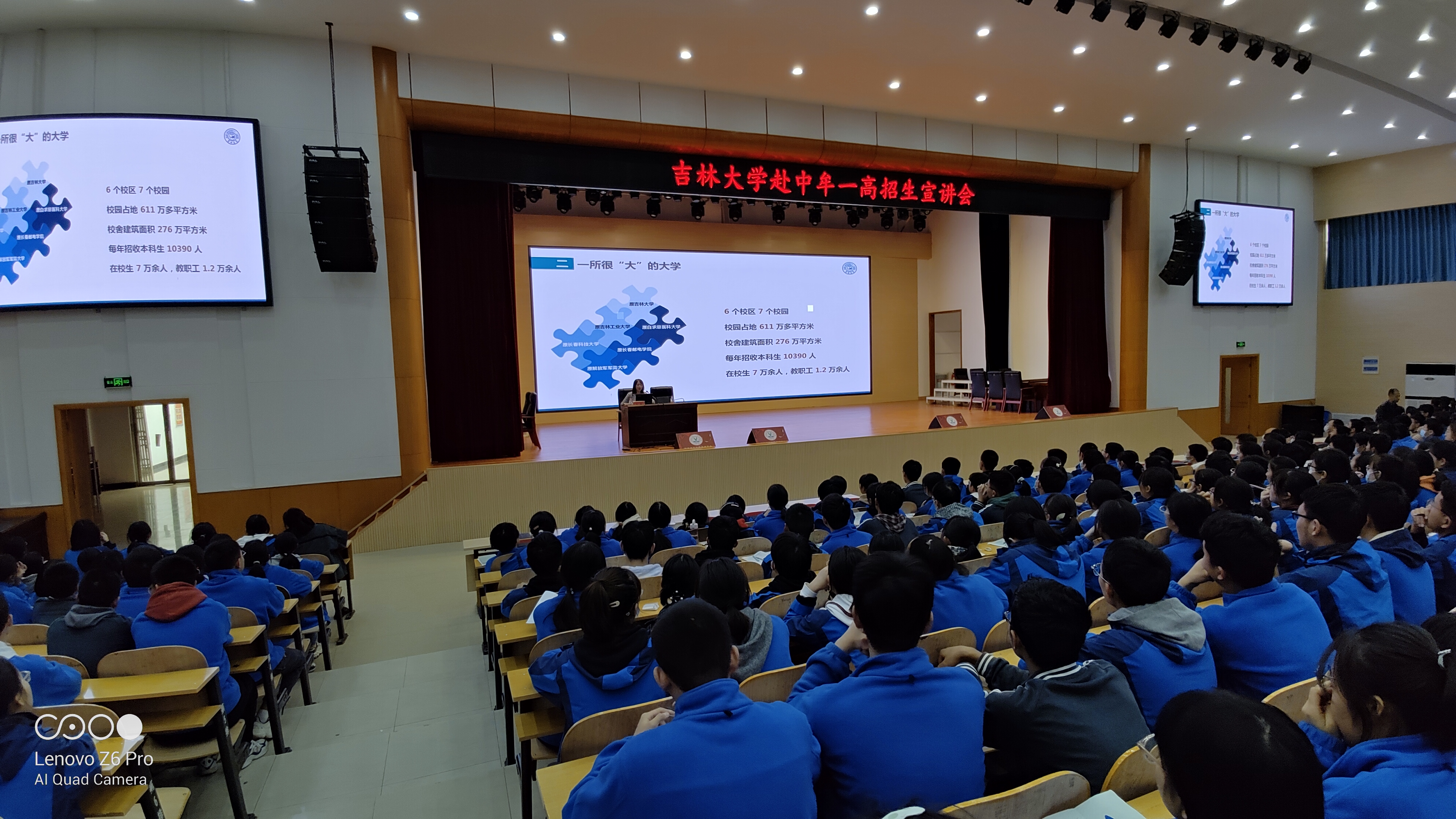 本科生教育基本情况、优势学科、培养质量等做了全面介绍,并向中牟县第一高级中学授予了“吉林大学优秀生源基地”牌匾。随后吴哲副书记为中牟一中600余名高三重点班学生做了生动的招生宣讲,学生反响热烈,很多同学表示希望报考吉林大学。