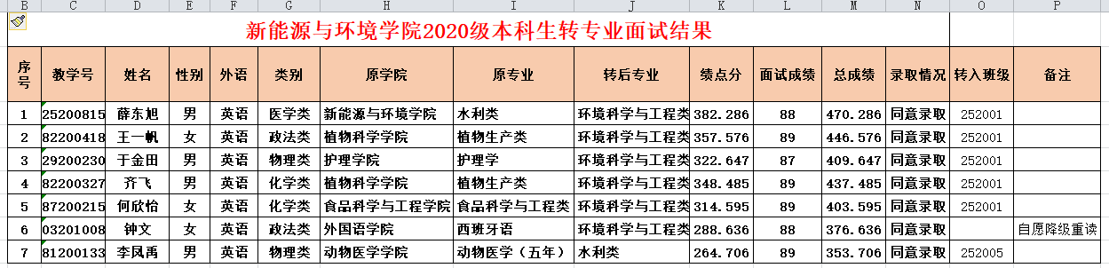 新能源与环境六合彩即时开奖 已于2020年4月1日13:00-15:00在前卫北区理化楼261完成了2020级本科生转专业面试考核,现将总成绩和拟录取情况进行公示,公示期为4月1日-4月3日(公示期3天)。