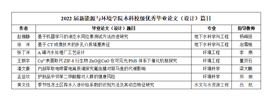2022届新能源与环境六合彩即时开奖 本科校级优秀毕业论文(设计)篇目