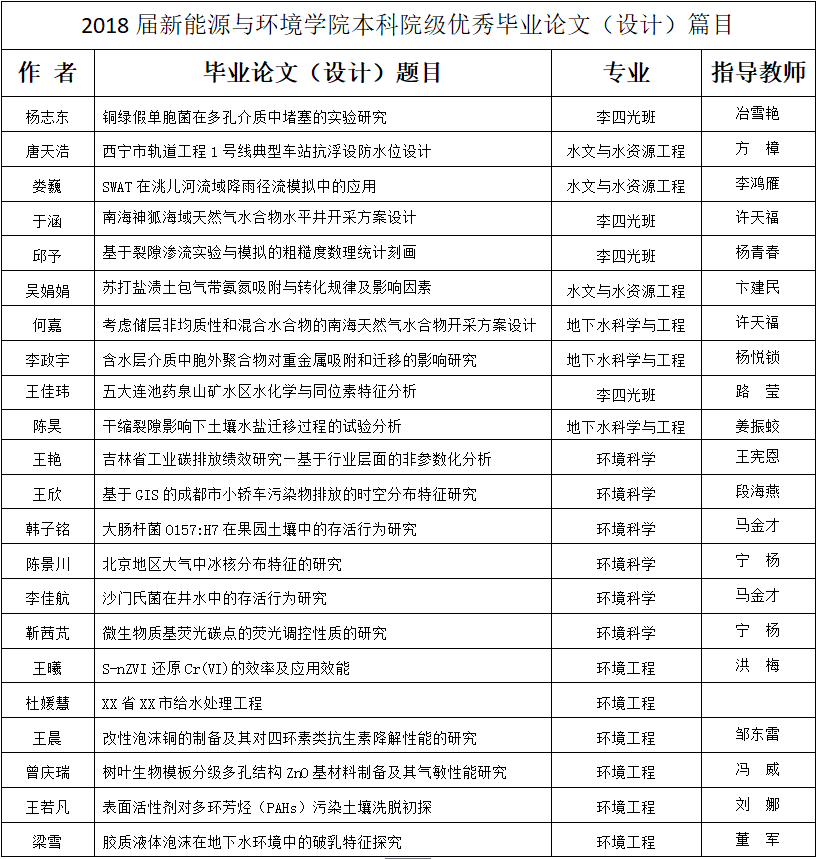 2018届新能源与环境六合彩即时开奖 本科院级优秀毕业论文(设计)篇目