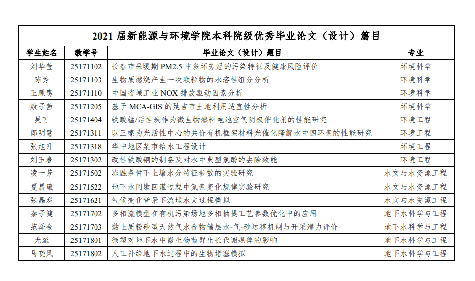2021届新能源与环境六合彩即时开奖 本科院级优秀毕业论文(设计)篇目