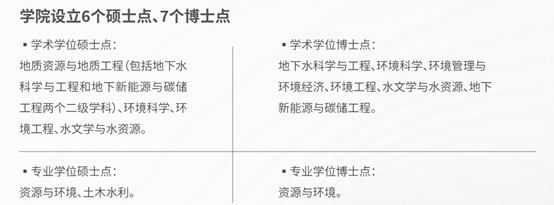 形成了本科-硕士-博士-博士后的完整人才培养体系,拥有环境科学与工程、地质资源与地质工程一级学科博士点和博士后流动站。在籍本科生940余人,硕士研究生320余人,博士研究生210余人。